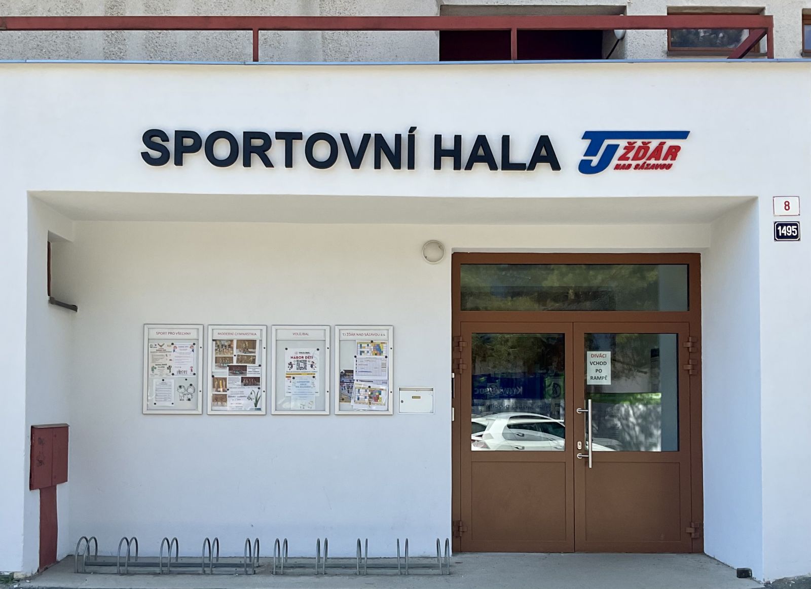 Sportovní hala TJ má novou tvář – nepřehlédnutelný nápis s názvem haly nad vchodem vás teď přivítá hned při příchodu.